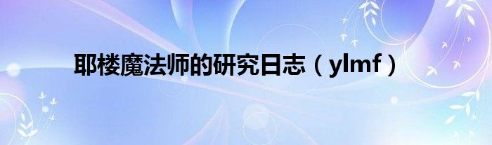关于耶楼魔法师的研究日志,ylmf这个很多人还不知道,今天菲菲来为大家解答以上的问题,现在让我们一起来看看吧!