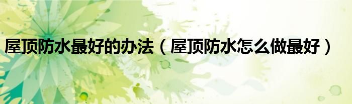 关于屋顶防水最好的办法,屋顶防水怎么做最好这个很多人还不知道,今天菲菲来为大家解答以上的问题,现在让我们一起来看看吧!