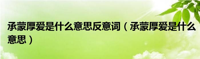 关于承蒙厚爱是什么意思反意词,承蒙厚爱是什么意思这个很多人还不知道,今天菲菲来为大家解答以上的问题,现在让我们一起来看看吧!