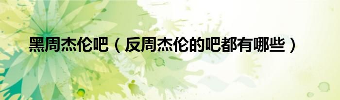 黑周杰伦吧(反周杰伦的吧都有哪些)