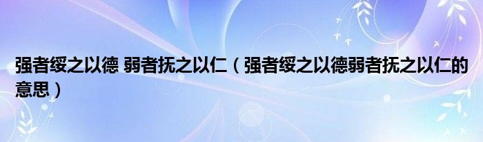 关于强者绥之以德 弱者抚之以仁,强者绥之以德弱者抚之以仁的意思这个很多人还不知道,今天菲菲来为大家解答以上的问题,现在让我们一起来看看吧!