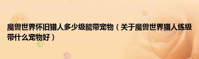 关于魔兽世界怀旧猎人多少级能带宠物,关于魔兽世界猎人练级带什么宠物好这个很多人还不知道,今天菲菲来为大家解答以上的问题,现在让我们一起来看看吧!