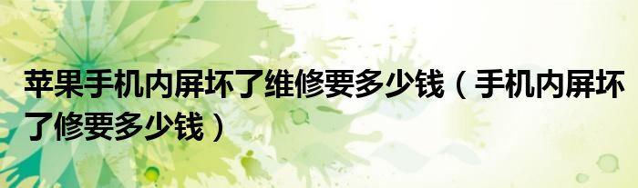 关于苹果手机内屏坏了维修要多少钱,手机内屏坏了修要多少钱这个很多人还不知道,今天菲菲来为大家解答以上的问题,现在让我们一起来看看吧!
