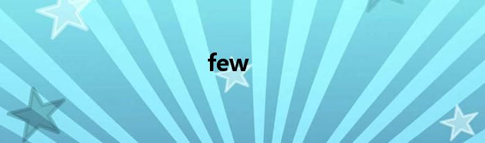 1、few的意思是:few,英语单词,名词、形容词、代词,作形容词时意为“很少的;几乎没有的”,作名词时意为“很少数,人名;(英)菲尤”,作代词时意为“很少”。2、few的发音:英[fjuː]美[fjuː]3、few词组短语:Few Showers短暂阵雨 ; 几阵骤雨;few flowered少花的 ;Few photographs少拍照 ; 几帧照片 ; 几个照片 ; 几张相片;so few如此之少 ; 那么少 ; 这么少了 ; 如此少人;Few moving少数移动 ;4、few的例句:①You should weigh her every few months.你的体重应该她每隔几个月。②Almost everyone knows that we should learn English well, but few of us know how to learn it well.几乎每个人都知道我们应该学好英语,但很少有人知道如何去学好它。③We get so few of them.我们很少有这样的一天。扩展资料:few语法应用:1、定冠词+fewThis is among the few books | really like.这本书是我真正喜爱的书之一。2、物主代词+fewShe tied up her few belongings into a bundle.她把自己仅有的几件东西束成一捆。3、其了限定词+fewSome few of the survivors are still living.当时幸免于难的人有几个人还活着。