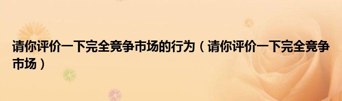关于请你评价一下完全竞争市场的行为,请你评价一下完全竞争市场这个很多人还不知道,今天菲菲来为大家解答以上的问题,现在让我们一起来看看吧!