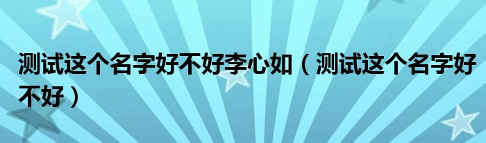 关于测试这个名字好不好李心如,测试这个名字好不好这个很多人还不知道,今天菲菲来为大家解答以上的问题,现在让我们一起来看看吧!