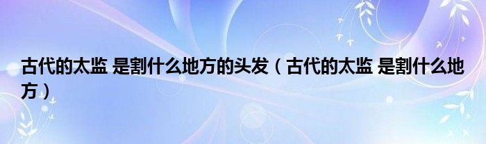 关于古代的太监 是割什么地方的头发,古代的太监 是割什么地方这个很多人还不知道,今天菲菲来为大家解答以上的问题,现在让我们一起来看看吧!