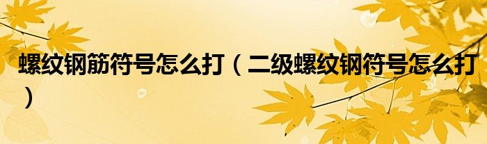 关于螺纹钢筋符号怎么打,二级螺纹钢符号怎么打这个很多人还不知道,今天菲菲来为大家解答以上的问题,现在让我们一起来看看吧!