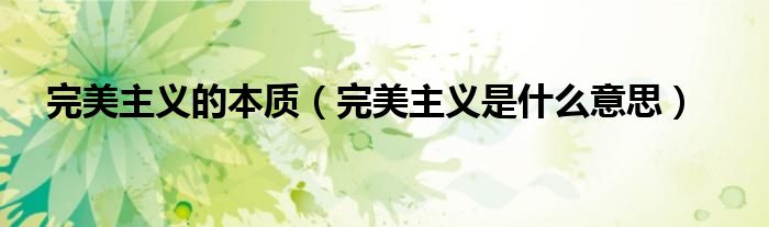 关于完美主义的本质,完美主义是什么意思这个很多人还不知道,今天菲菲来为大家解答以上的问题,现在让我们一起来看看吧!