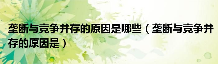 关于垄断与竞争并存的原因是哪些,垄断与竞争并存的原因是这个很多人还不知道,今天菲菲来为大家解答以上的问题,现在让我们一起来看看吧!