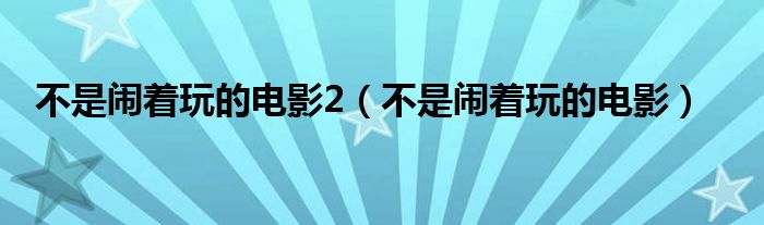 关于不是闹着玩的电影2,不是闹着玩的电影这个很多人还不知道,今天菲菲来为大家解答以上的问题,现在让我们一起来看看吧!