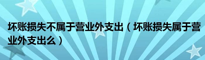 关于坏账损失不属于营业外支出,坏账损失属于营业外支出么这个很多人还不知道,今天菲菲来为大家解答以上的问题,现在让我们一起来看看吧!
