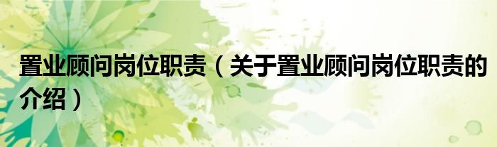 置业顾问岗位职责(关于置业顾问岗位职责的介绍)