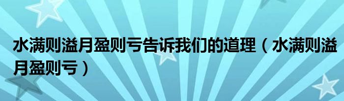 关于水满则溢月盈则亏告诉我们的道理,水满则溢月盈则亏这个很多人还不知道,今天菲菲来为大家解答以上的问题,现在让我们一起来看看吧!