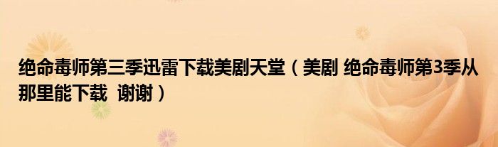 关于绝命毒师第三季迅雷下载美剧天堂,美剧 绝命毒师第3季从那里能下载 谢谢这个很多人还不知道,今天菲菲来为大家解答以上的问题,现在让我们一起来看看吧!