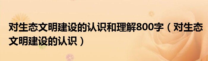关于对生态文明建设的认识和理解800字,对生态文明建设的认识这个很多人还不知道,今天菲菲来为大家解答以上的问题,现在让我们一起来看看吧!