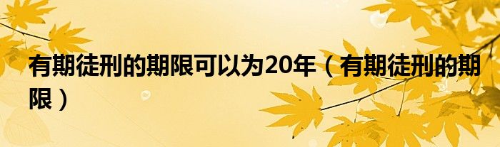 关于有期徒刑的期限可以为20年,有期徒刑的期限这个很多人还不知道,今天菲菲来为大家解答以上的问题,现在让我们一起来看看吧!