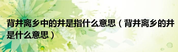 关于背井离乡中的井是指什么意思,背井离乡的井是什么意思这个很多人还不知道,今天菲菲来为大家解答以上的问题,现在让我们一起来看看吧!