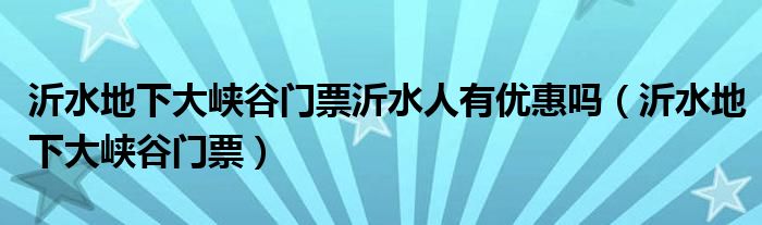 关于沂水地下大峡谷门票沂水人有优惠吗,沂水地下大峡谷门票这个很多人还不知道,今天菲菲来为大家解答以上的问题,现在让我们一起来看看吧!