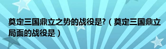 奠定三国鼎立之势的战役是?(奠定三国鼎立局面的战役是)