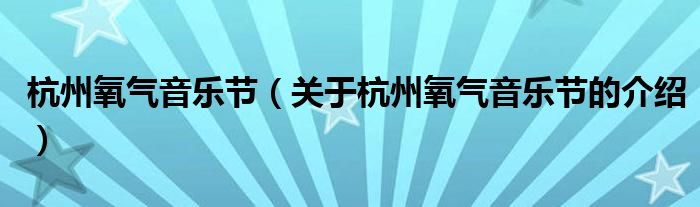 杭州氧气音乐节(关于杭州氧气音乐节的介绍)
