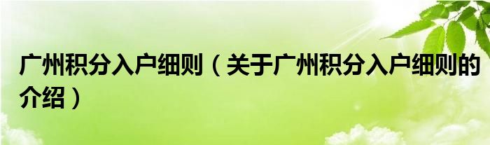 1、《广州市积分制入户管理办法》是2016年10月26日广州市人民政府发布的文件。