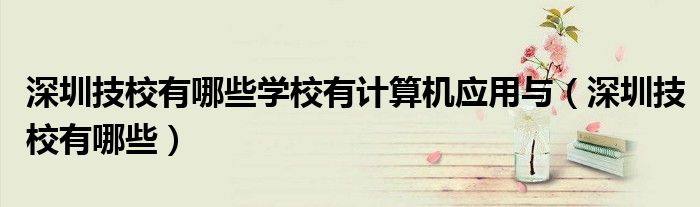 关于深圳技校有哪些学校有计算机应用与,深圳技校有哪些这个很多人还不知道,今天菲菲来为大家解答以上的问题,现在让我们一起来看看吧!