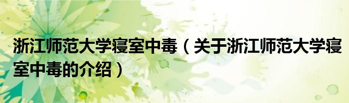 大家好,今天小乐来为大家解答以上的问题。浙江师范大学寝室中毒,关于浙江师范大学寝室中毒的介绍很多人还不知道,现在让我们一起来看看吧!