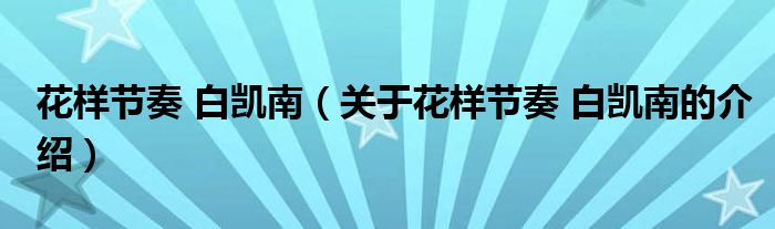 花样节奏白凯南(关于花样节奏白凯南的介绍)
