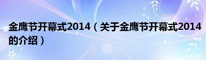 大家好,今天小乐来为大家解答以上的问题。金鹰节开幕式2014,关于金鹰节开幕式2014的介绍很多人还不知道,现在让我们一起来看看吧!