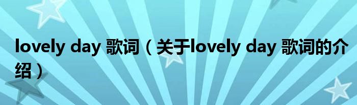 大家好,今天小乐来为大家解答以上的问题。lovely day 歌词,关于lovely day 歌词的介绍很多人还不知道,现在让我们一起来看看吧!