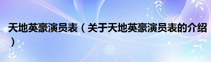 大家好,今天小乐来为大家解答以上的问题。天地英豪演员表,关于天地英豪演员表的介绍很多人还不知道,现在让我们一起来看看吧!