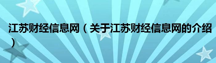大家好,今天小乐来为大家解答以上的问题。江苏财经信息网,关于江苏财经信息网的介绍很多人还不知道,现在让我们一起来看看吧!