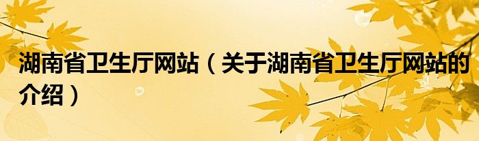 大家好,今天小乐来为大家解答以上的问题。湖南省卫生厅网站,关于湖南省卫生厅网站的介绍很多人还不知道,现在让我们一起来看看吧!