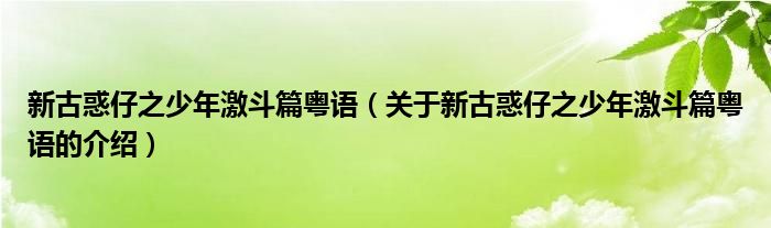 大家好,小都来为大家解答以上的问题。新古惑仔之少年激斗篇粤语,关于新古惑仔之少年激斗篇粤语的介绍很多人还不知道,现在让我们一起来看看吧!