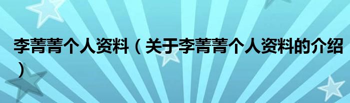大家好,小都来为大家解答以上的问题。李菁菁个人资料,关于李菁菁个人资料的介绍很多人还不知道,现在让我们一起来看看吧!