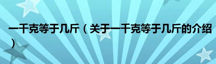 大家好,小都来为大家解答以上的问题。一千克等于几斤,关于一千克等于几斤的介绍很多人还不知道,现在让我们一起来看看吧!