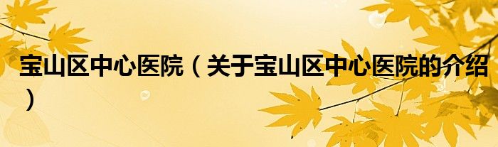 大家好,小都来为大家解答以上的问题。宝山区中心医院,关于宝山区中心医院的介绍很多人还不知道,现在让我们一起来看看吧!
