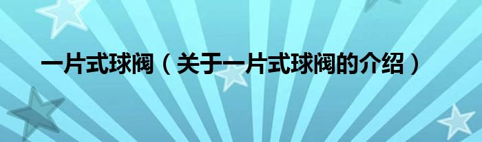 大家好,小都来为大家解答以上的问题。一片式球阀,关于一片式球阀的介绍很多人还不知道,现在让我们一起来看看吧!