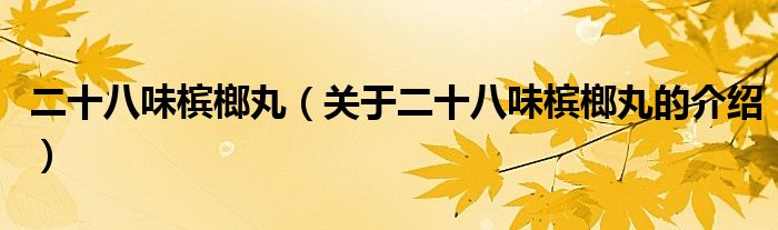 二十八味槟榔丸(关于二十八味槟榔丸的介绍)