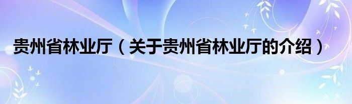 大家好,小都来为大家解答以上的问题。贵州省林业厅,关于贵州省林业厅的介绍很多人还不知道,现在让我们一起来看看吧!