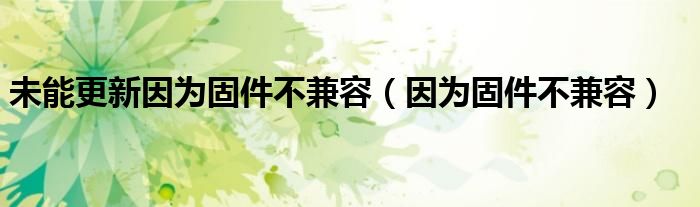 大家好,雨雨来为大家解答以上问题,未能更新因为固件不兼容,因为固件不兼容很多人还不知道,现在让我们一起来看看吧!