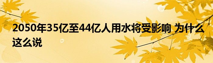 大家好.我是互联百科的羽儿,现在为大家解决以上2050年35亿至44亿人用水将受影响 为什么这么说的问题.
