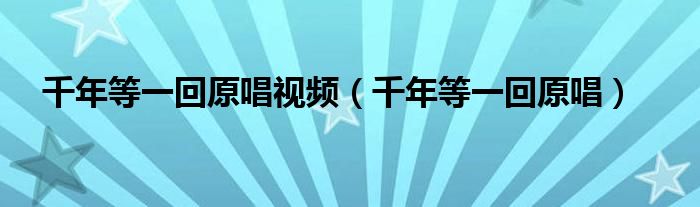 大家好,小晋来为大家解答以下问题,关于千年等一回原唱视频,千年等一回原唱很多人还不知道,今天让我们一起来看看吧!