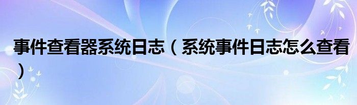 大家好,小晋来为大家解答以下问题,关于事件查看器系统日志,系统事件日志怎么查看很多人还不知道,今天让我们一起来看看吧!