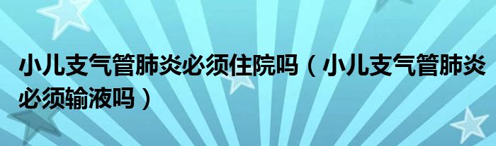 大家好,乐天来为大家解答以下的问题,小儿支气管肺炎必须住院吗,小儿支气管肺炎必须输液吗很多人还不知道,现在让我们一起来看看吧!