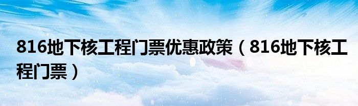 关于816地下核工程门票优惠政策,816地下核工程门票这个很多人还不知道,今天菲菲来为大家解答以上的问题,现在让我们一起来看看吧!