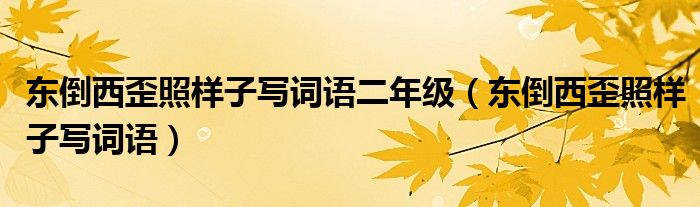 大家好,小晋来为大家解答以下问题,关于东倒西歪照样子写词语二年级,东倒西歪照样子写词语很多人还不知道,今天让我们一起来看看吧!