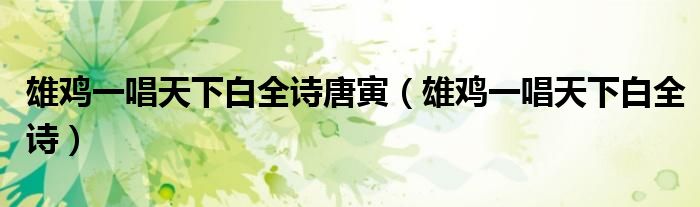关于雄鸡一唱天下白全诗唐寅,雄鸡一唱天下白全诗这个很多人还不知道,今天菲菲来为大家解答以上的问题,现在让我们一起来看看吧!