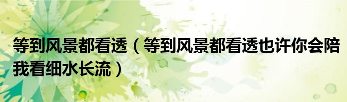 大家好,小小来为大家解答以下问题,等到风景都看透,等到风景都看透也许你会陪我看细水长流很多朋友还不知道,现在让我们一起来看看吧!